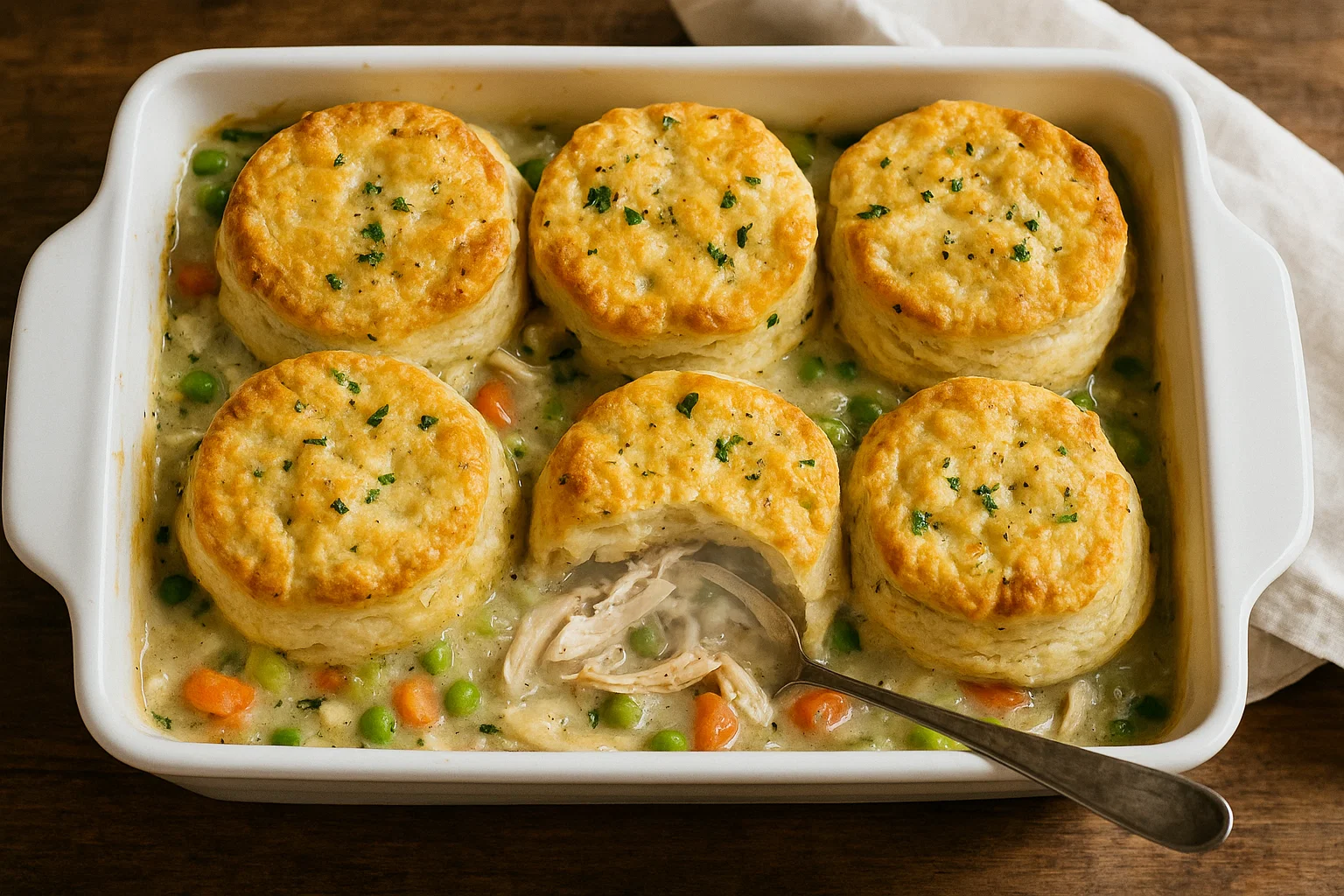 Can I make individual pies? Yes, divide filling into ramekins and top with biscuits; bake 12–18 minutes.