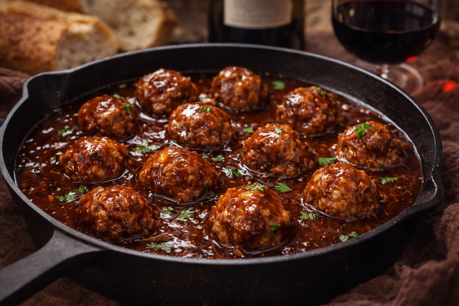 Cozy Braised Meatballs in Red Wine Gravy