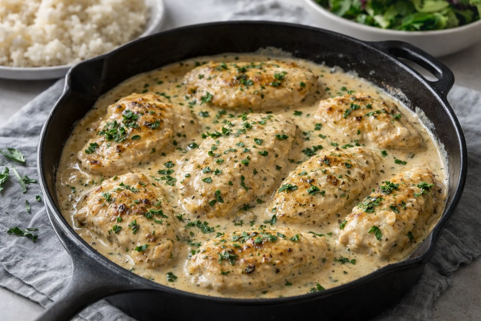 You can pair this dish with a variety of sides, such as rice, mashed potatoes, roasted vegetables, or a fresh garden salad to complement the creamy flavors.