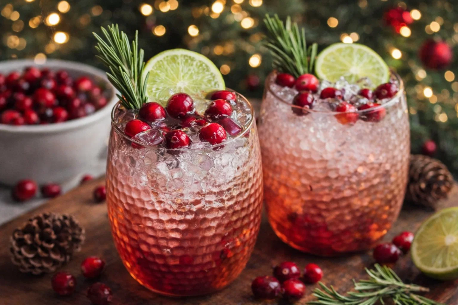 Finally, garnish your drink with a sprig of fresh mint and a few cranberries for that perfect festive touch.