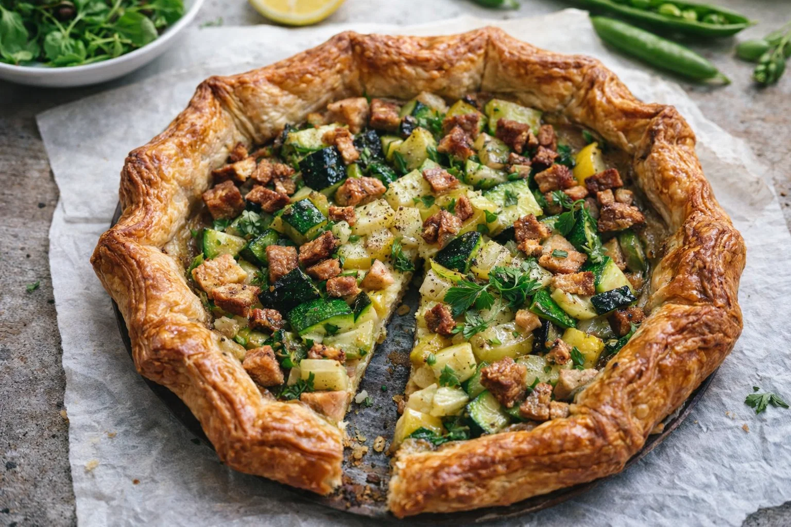 The beauty of this recipe lies in its versatility. It’s a health-conscious choice, perfect for anyone following vegan, vegetarian, or gluten-free diets. The flaky pastry envelops a mixture of seasonal vegetables, which are packed with essential nutrients. Prepare this galette as an impressive centerpiece for your next family gathering, picnic, or even a cozy dinner for two. Its rustic charm and wholesome ingredients will leave your guests craving seconds and guessing your secret.