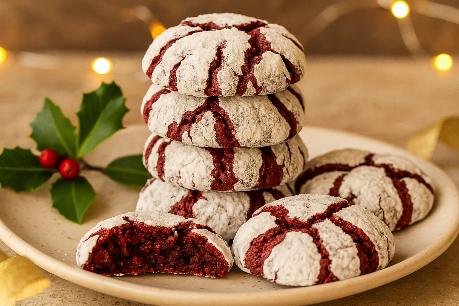 Each ingredient plays a role: flour forms the cookie, cocoa and vinegar produce classic red velvet flavor, and butter or its alternatives determine tenderness. Powdered sugar creates the crinkle effect and adds a delicate sweetness to the exterior.