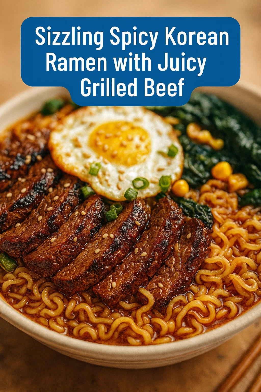 Sizzling Spicy Korean Ramen with Juicy Grilled Beef Velvety Sauce