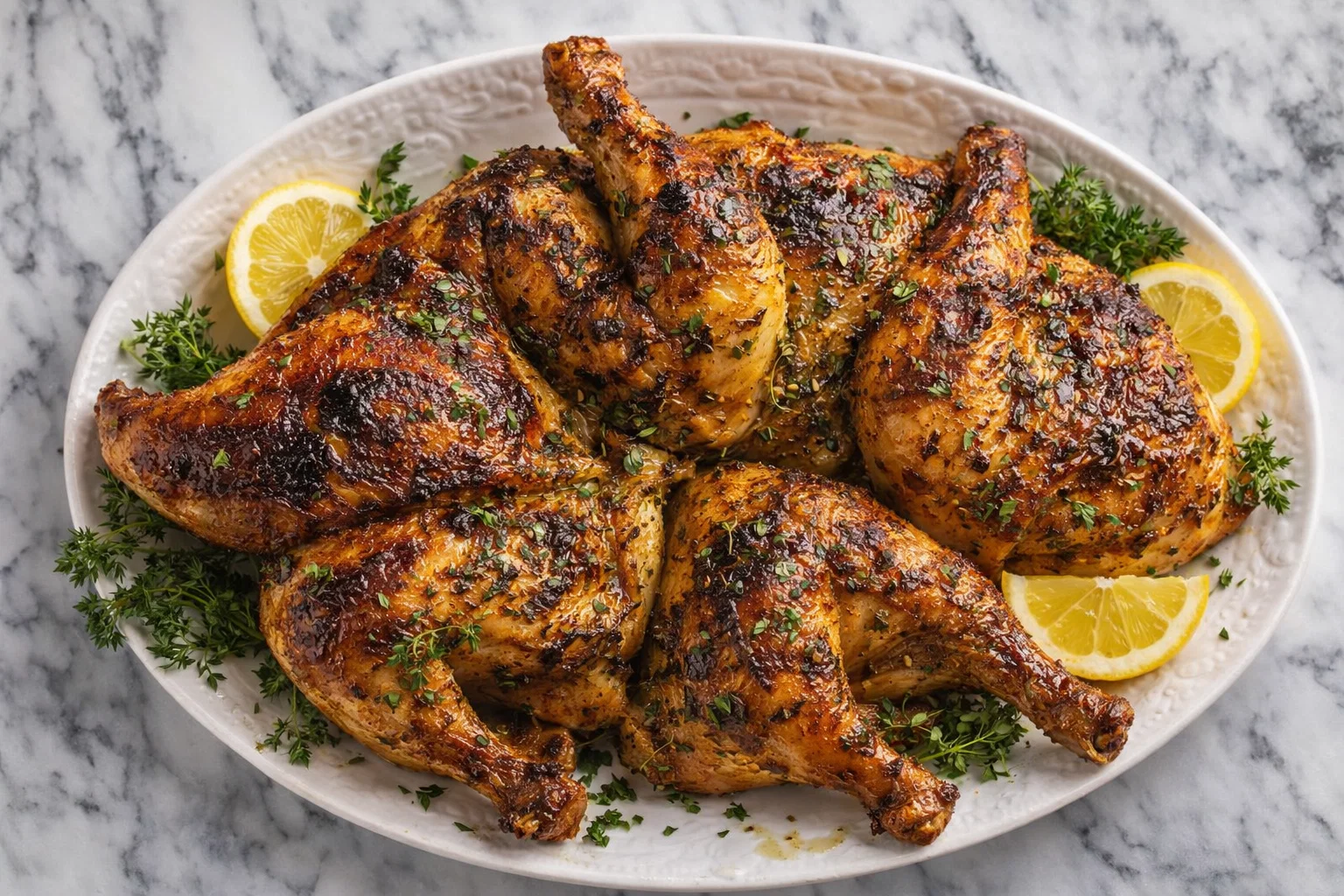 Marinate: For enhanced flavor, marinate your spatchcocked chicken for a few hours or overnight in a zesty marinade of your choice. Lemon juice, garlic, herbs, and a splash of olive oil can do wonders.