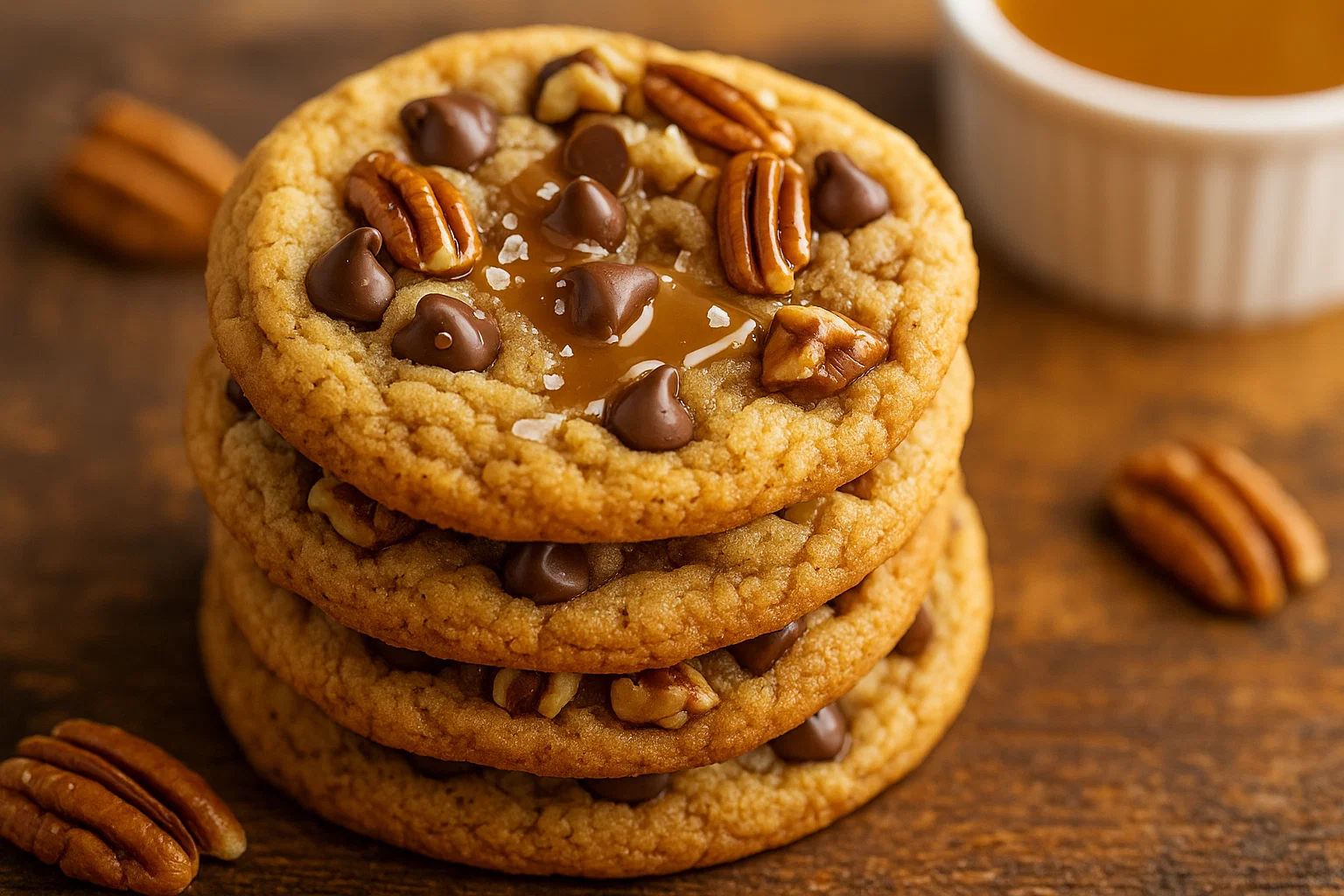 Because they blend simplicity with gourmet flavors. First, these cookies use familiar pantry staples, which means you can bake them on short notice. Also, the steps remain approachable for beginners while offering room for advanced bakers to experiment. The cookie dough bakes to a golden edge and a soft center, and the caramel and pecan additions lift the flavor profile beyond an ordinary cookie.